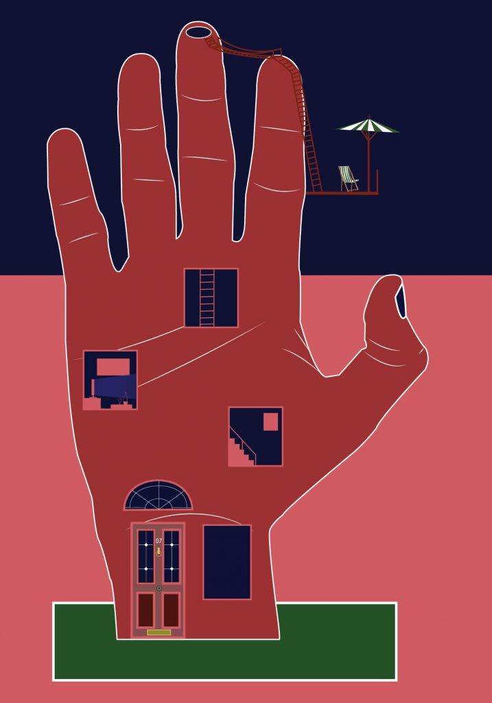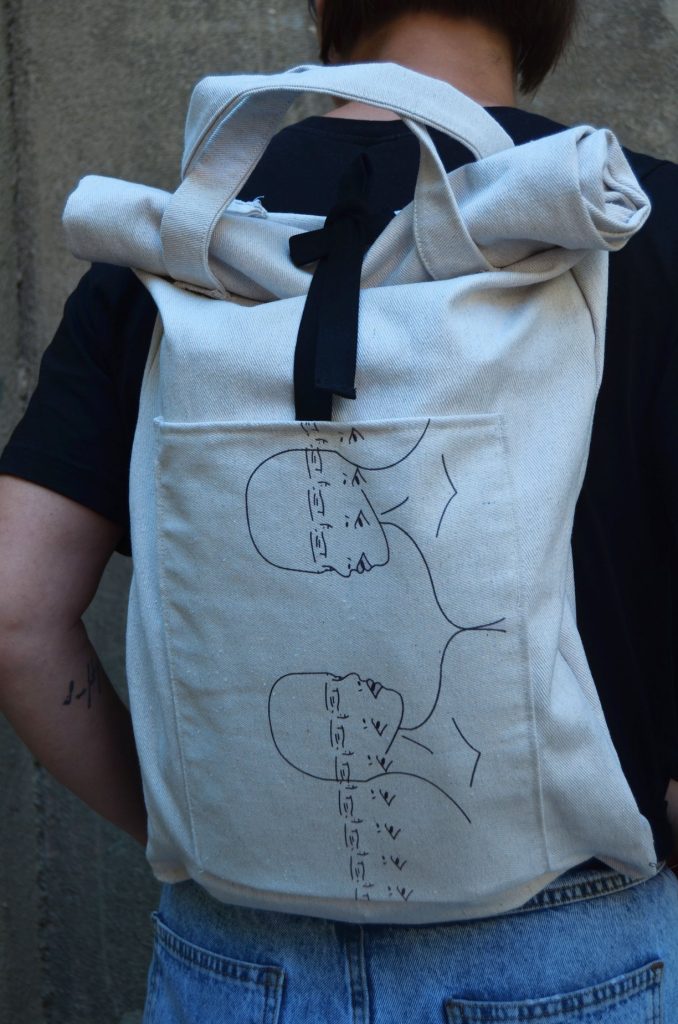 Na naši dražbi se bo Ammar predstavil s tremi umetniškimi deli; nahrbtnikom in razglednico z unikatno ilustracijo ter dvema slikama. Eno od slik je ustvaril v sodelovanju z Bogomilom, ki živi in dela v naši skupnosti.