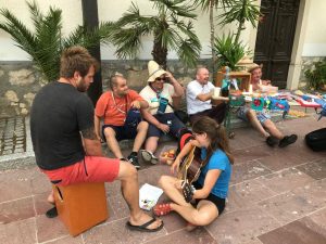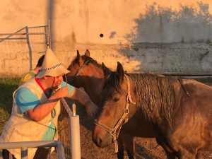 In kaj vse nismo tam doživeli in počeli; skrbeli za živali – da so pojedle dovolj vitaminov ter da so imele v hlevcu čisto, jahali, igrali nogomet, obiskali Vulkanijo na Goričkem, pa Grad in izvir žveplene vode, spoznali brodarja na reki Muri, ki nas je z brodom popeljal na drugo stran reke, vse do Avstrije, pa peli in igrali na kitaro, violino, bobne, ob večerih zakurili ogenj, obiskali g. Srečota, ki izdeluje makete bark in druge umetnine ter se ob popoldnevih družili z vaščani, ki so nas »zalagali« z najrazličnejšimi dobrotami; domačimi roladami, pa medenjaki in drugim pecivom, pa odličnim segadin golažem ter domačim kruhom, pa res bogatim narezkom ter predvsem z vsemi lepimi besedami in časom, ki so nam ga namenili. Hvala prav vsem.