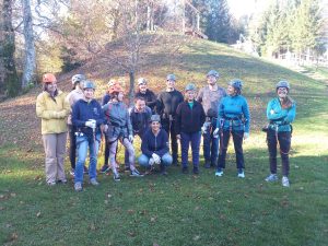 Tokrat smo se podali na Gorenjsko, natančneje na Stražo nad Bledom. Po krajšem vzponu na Stražo, smo si opasali varnostno opremo in se preizkusili v plezalnih veščinah med krošnjami v Pustolovskem parku Bled. Plezalne poti so načrtovane stopenjsko in vsakdo izmed nas je lahko izbral svoji telesni pripravljenosti in spretnostim primerno plezalno pustolovščino.