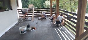 Po treh dneh dela z vmesnimi odmori za malico in kosilo, je terasa v celoti dobila svež estrih. Delo deklet bomo nadaljevali letos jeseni, ko se nam pridružijo prostovoljci podjetja Goodyear Slovenija, ki bodo položili še ploščice.