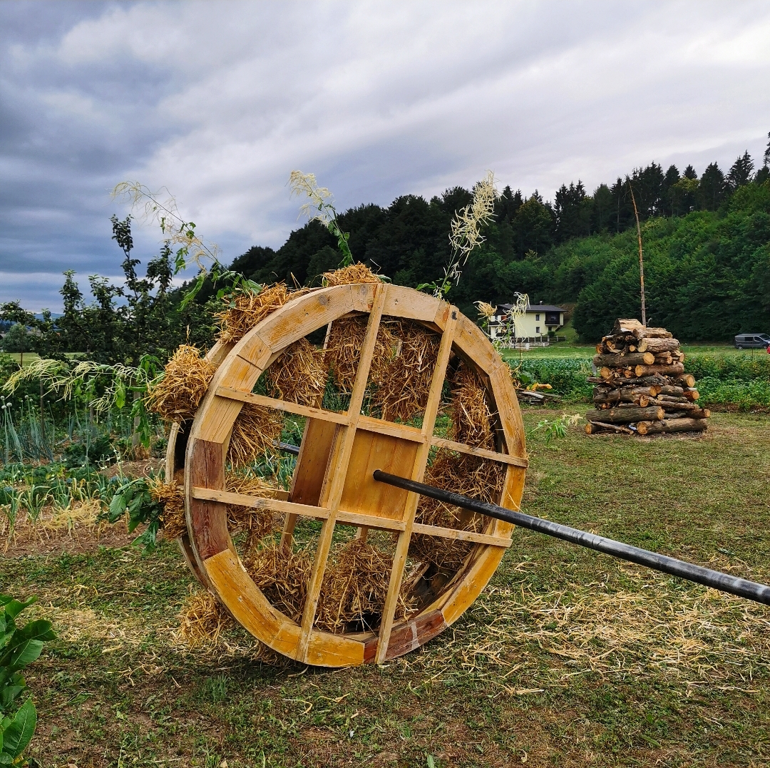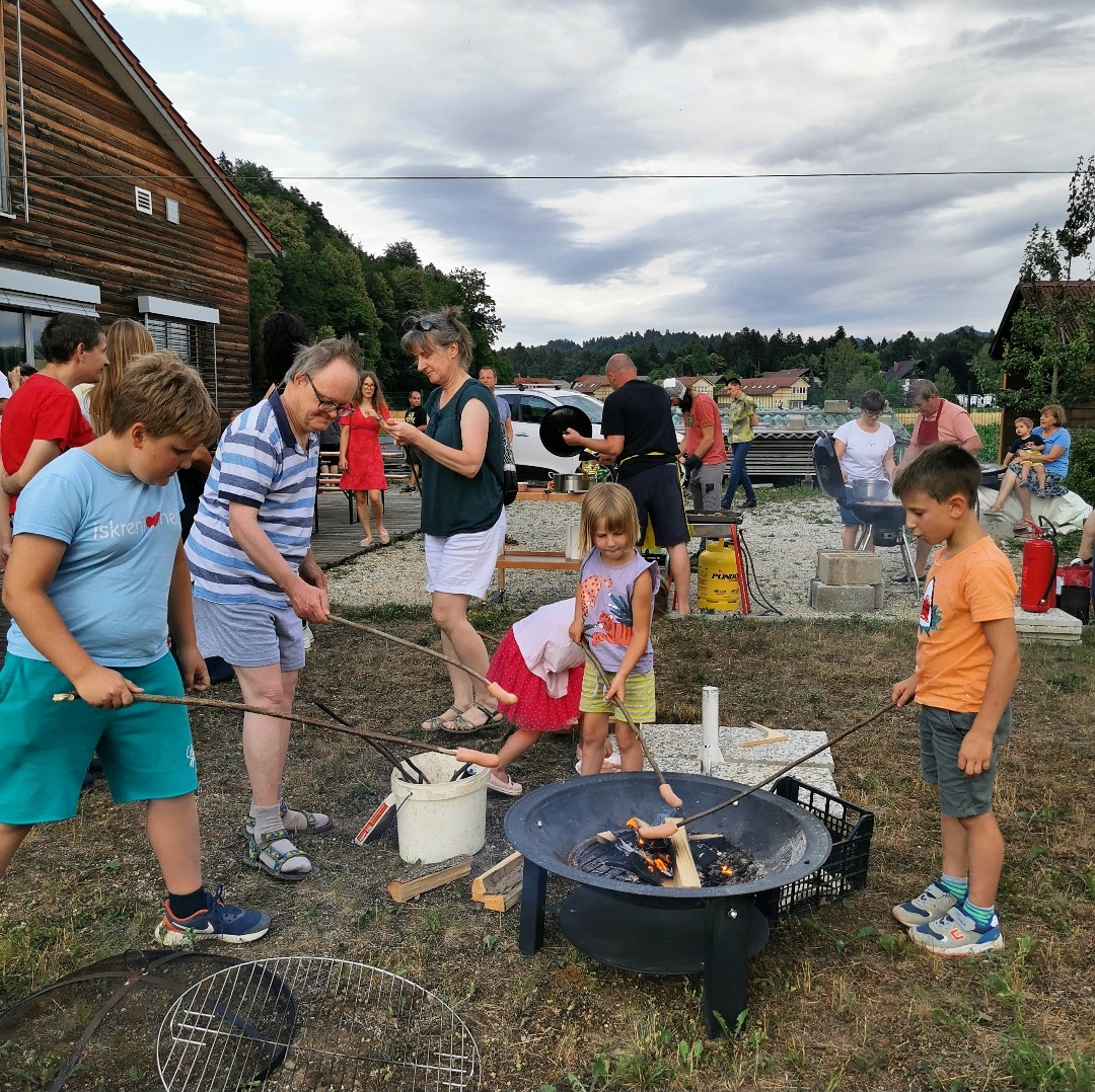 Tako smo tudi mi ob mraku prižgali z slamo napolnjeno leseno kolo, le da smo ga kotalili le po skupnostnem vrtu. Dogodek je popestril tudi nastop pevke in kitaristke Janje Martinjak.