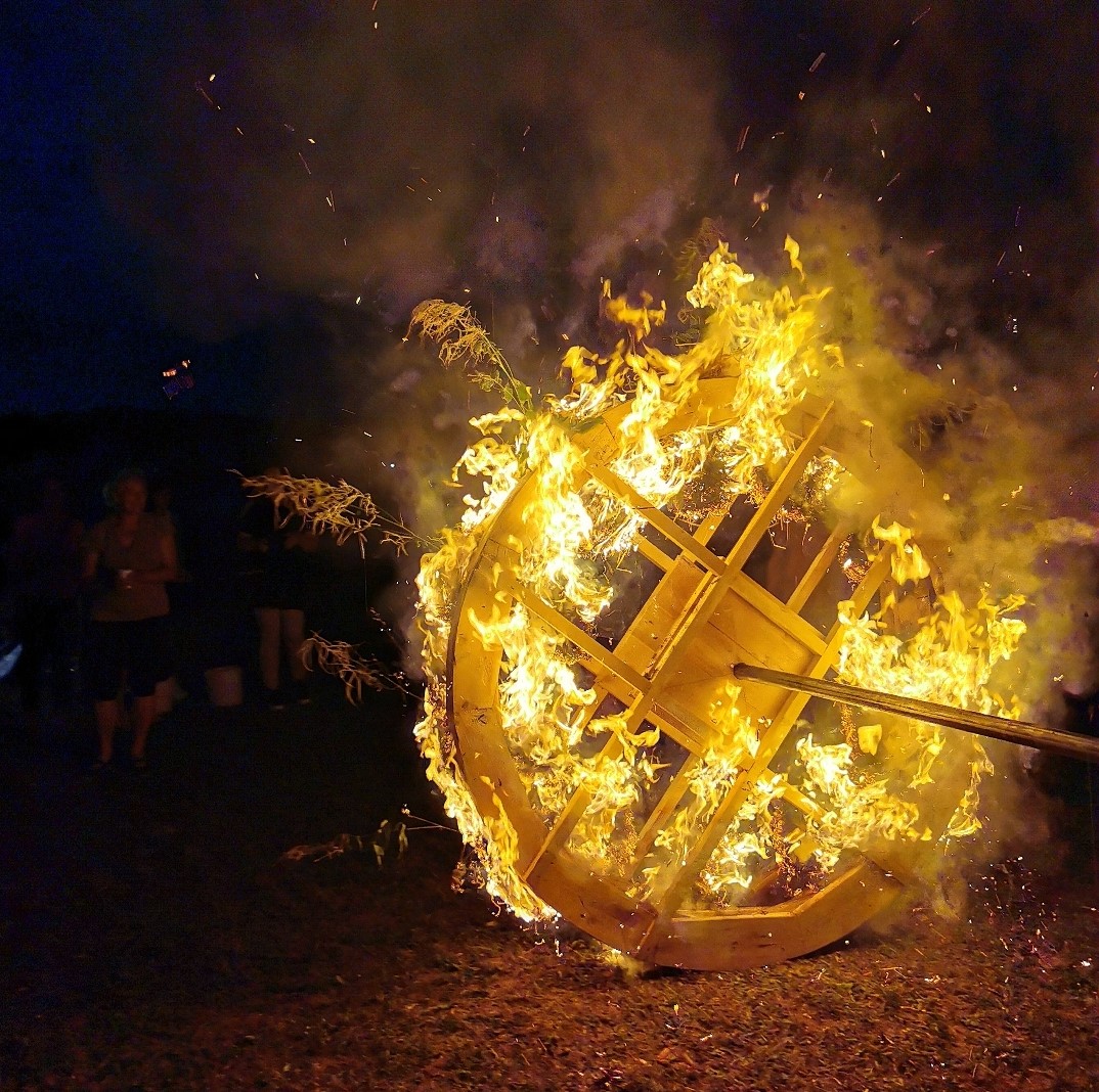 Novost letošnjega kresovanja je bilo leseno kolo, ki so ga po stari poganski tradiciji napolnili s slamo in pripeljali na vrh hriba, pod katerim je tekla reka. Kolo so moški prižgali z baklami in potisnili po hribu navzdol. Ženske so poskrbele za to, da so reki pomagale pogasiti goreče kolo. Kolo je simboliziralo sonce, namen običaja pa je bilo zagotavljanje dobre letine.