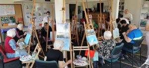 S šolskim letom 2021/2022 smo v sklopu projekta Umetnost sodelovanja ranljivih skupin ljudi začeli z izvajanjem umetniških delavnic/art terapije, ki so potekale enkrat tedensko – vsak torek, uro in pol, v prostorih Društva Barka. Vodili sta jih slikarki Renata Grmovšek in Andreja Eržen, ki sta vsak teden pri likovnem ustvarjanju usmerjali 8 – 12 amaterskih umetnikov različnih starosti. Umetniškim delavnicam so se namreč, poleg članov Barke, vsakokrat pridružili tudi učenci VIZ Frana Milčinskega Smlednik, stanovalci DEOS Centra starejših Medvode ter zunanji obiskovalci.