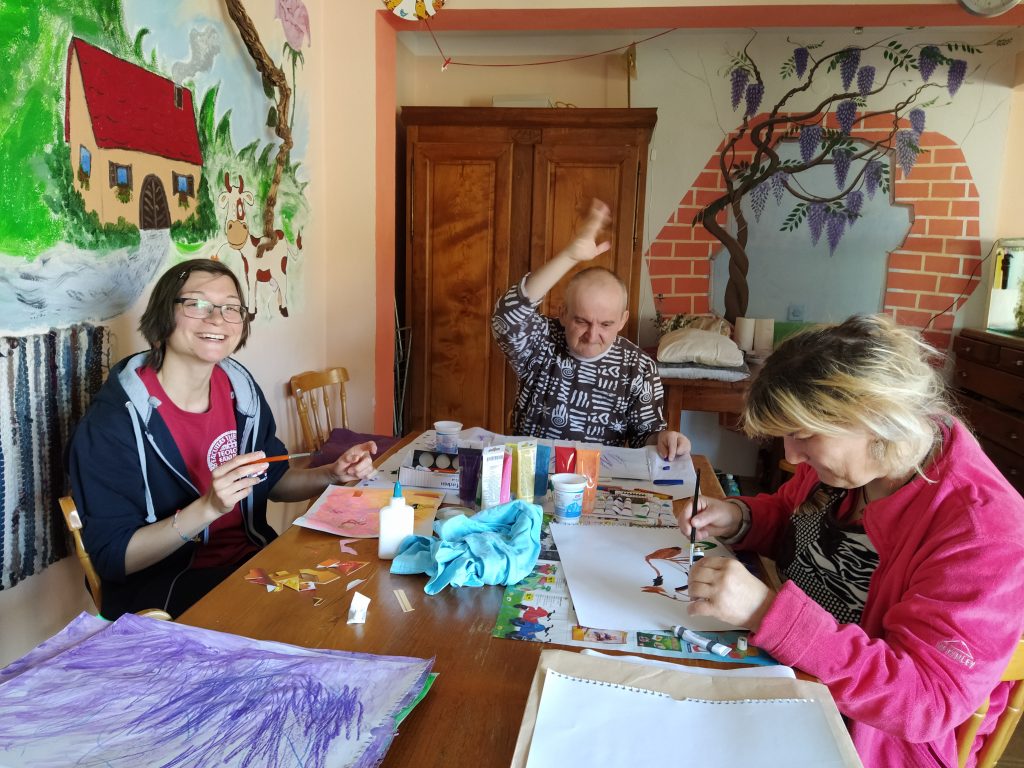 ZAKAJ? Tekom zadnjih 23 let smo ustvarili določen dnevni ritem, ki temelji na čim večjem vključevanju oseb z motnjo v duševnem razvoju v družbo preko različnih aktivnosti. V preteklih treh tednih smo se soočali z veliko izzivi: biti v veliki meri zaprti v hiši, znova in znova najti poti smiselnega ustvarjanja in dela v okolici hiš. Ampak uspelo nam je, počasi se navajamo novega ritma in smo vedno bolj zadovoljni. Izdelali smo voščilnice za Veliko noč, zunaj čaka na novo sezono pripravljen vrt, lotili smo se pomivanja oken, hodimo na sprehode v naravo, kjer ni ljudi, itd…Redno pa tudi merimo telesno temperaturo in opazujemo svoje fizično stanje ter morebitne spremembe. Veseli in hvaležni smo, da smo vsi zdravi!