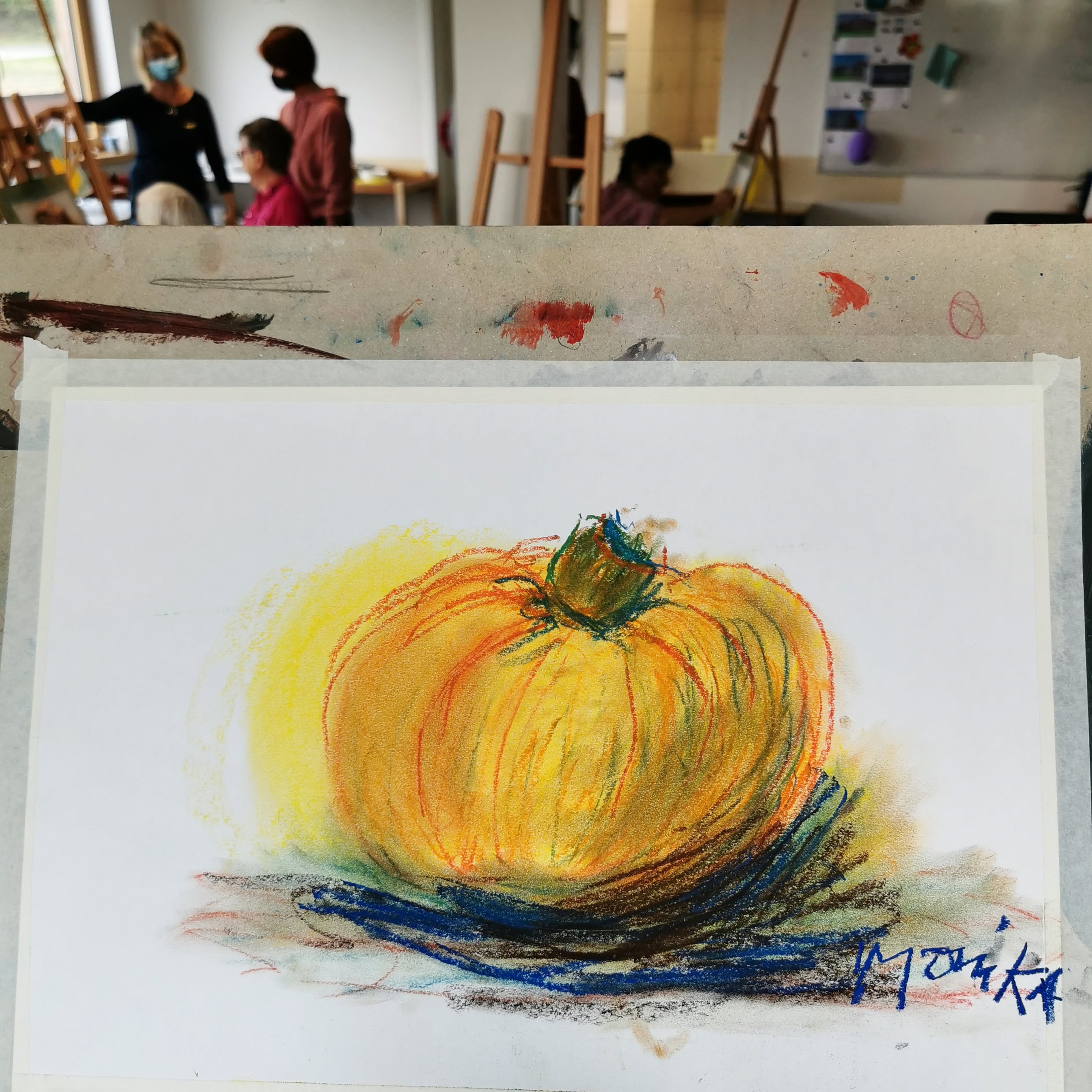 Prvi sklop delavnic je vodila slikarka Renata Grmovšek, drugi sklop, ki se je začel v decembru pa bo vodila slikarka Andreja Eržen. V prvem sklopu smo spoznali osnove slikanja na platno z akrilnimi barvami in na papir s suhimi pasteli. Imeli smo veliko različnih tematik – slikali smo jesenske živali in jesensko gozdno pokrajino, za Noč čarovnic smo s pasteli risali buče, ob bližanju zime smo risali vedno bolj zasnežene pokrajine in zimske živali. Pri izbiranju teme smo upoštevali želje udeležencev; Barkači so v večini najraje risali živali, medtem ko so starejši iz DEOS-a izrazili željo po risanju narave, dreves in cvetlic.