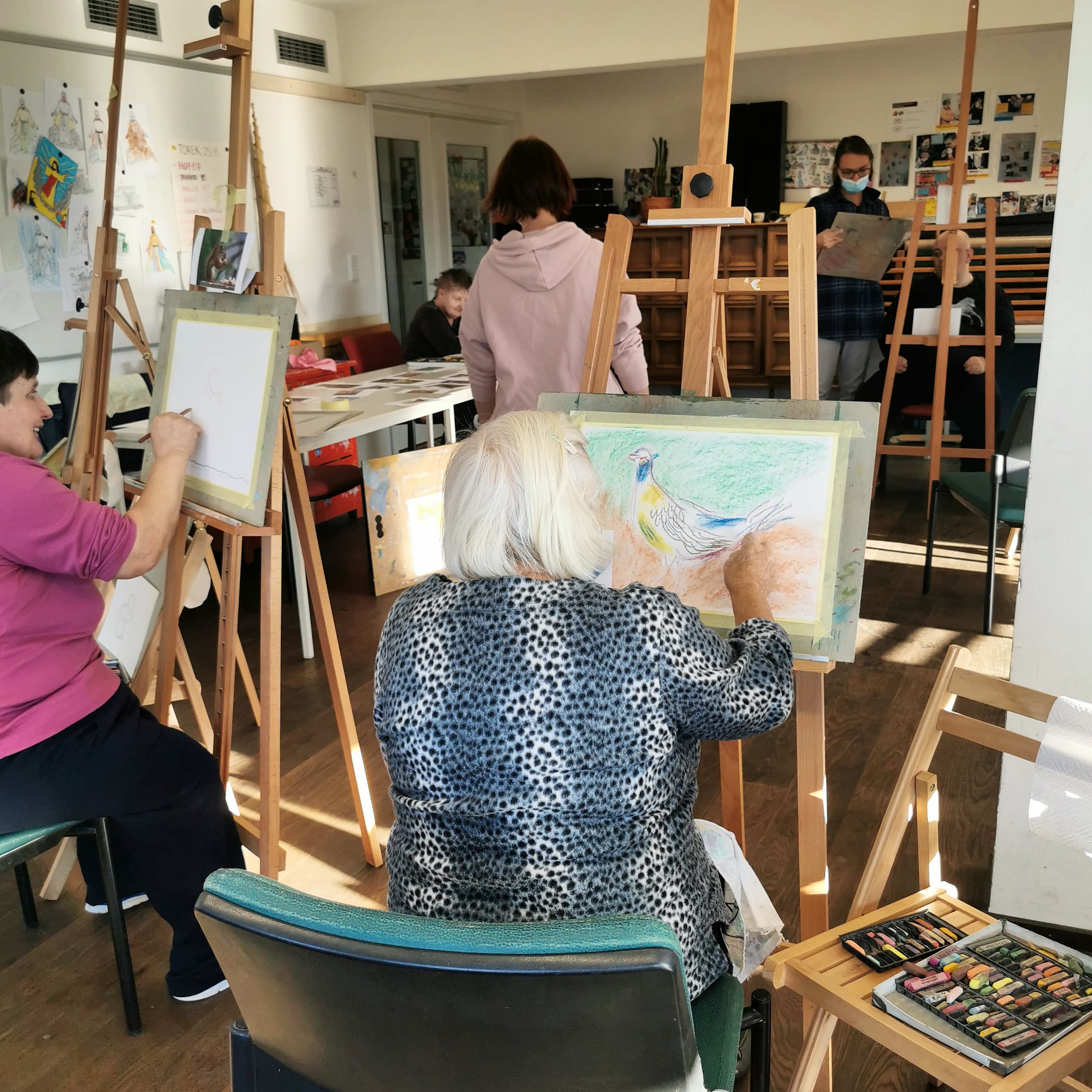V septembru smo začeli z izvajanjem umetniških delavnic/art terapije, ki potekajo enkrat tedensko – vsak torek. Na delavnicah ustvarjamo v raznoliki skupini, ki šteje od 8 do 12 amaterskih umetnikov. To so poleg Barkačev tudi osnovnošolci iz VIZ-a Frana Milčinskega Smlednik, starejši iz DEOS-a Medvode ter zunanji obiskovalci.