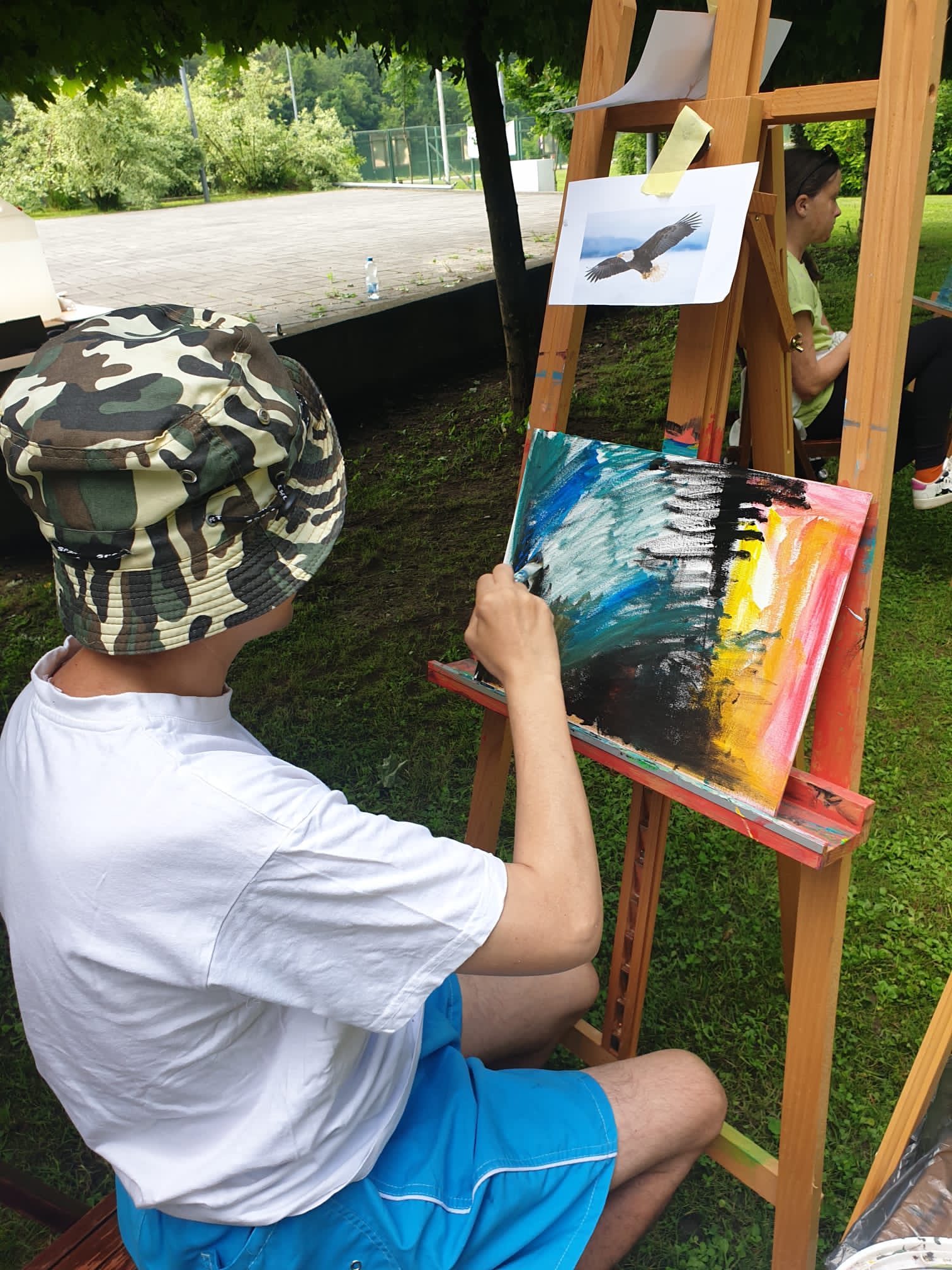 Dogajanje v sklopu novega projekta »Umetnost sodelovanje ranljivih skupin 2«, smo pretekli torek, 13. junija 2023, pričeli z Likovno kolonijo ob Zbiljskem jezeru. Kolonijo sta otvorila ga. Martina Kutnar z Občine Medvode in g. Blaž Brešan, direktor Društva Barka.